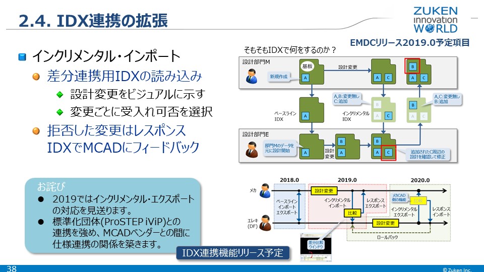 さらに、2018.0でリリースしたIDX連携に、インクリメンタル・インポートの機能も追加する予定です。